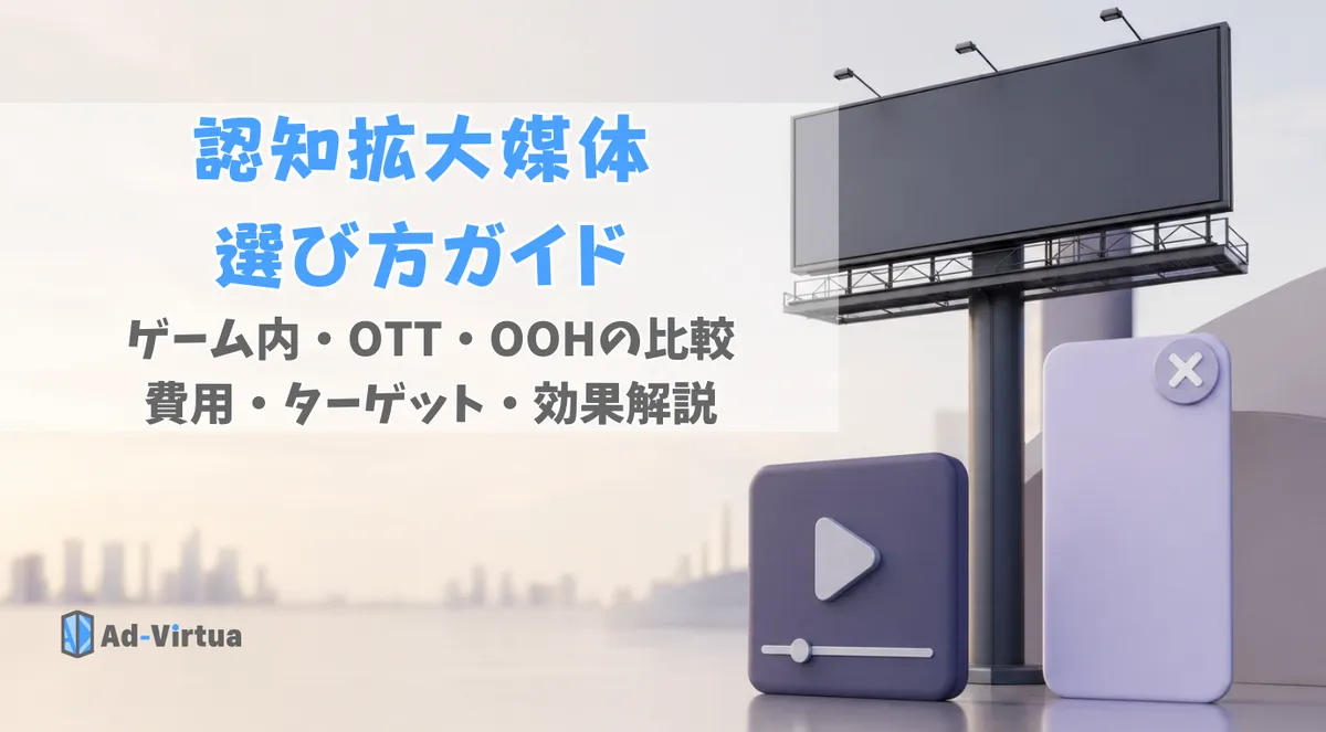 「次の認知拡大施策はゲーム内広告・OTT(動画配信)・OOH(屋外広告)のどれにすべきか」——答えは予算規模・ターゲットの年齢層・保有している動画素材の有無の3点によって変わる。この記事では3媒体をCPM・最低出稿金額・ターゲティング精度・広告効果の4項目で比較し、業種・予算規模別の選定基準まで一気に解説する。