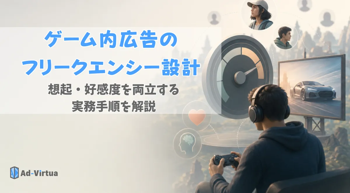 この記事では、ゲーム内広告(サイネージ型/リワード型/インタースティシャル型)ごとに異なるフリークエンシー設計の考え方を整理し、目的別の目安・3層モデル・実務チェックリスト・よくある失敗まで一気通貫でまとめました。