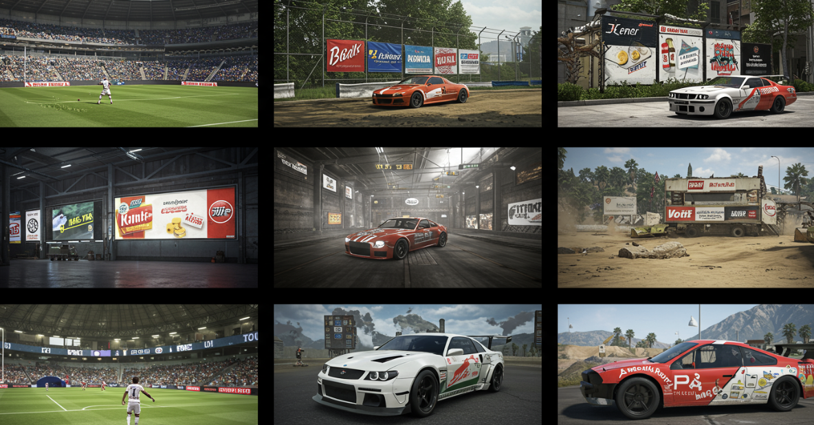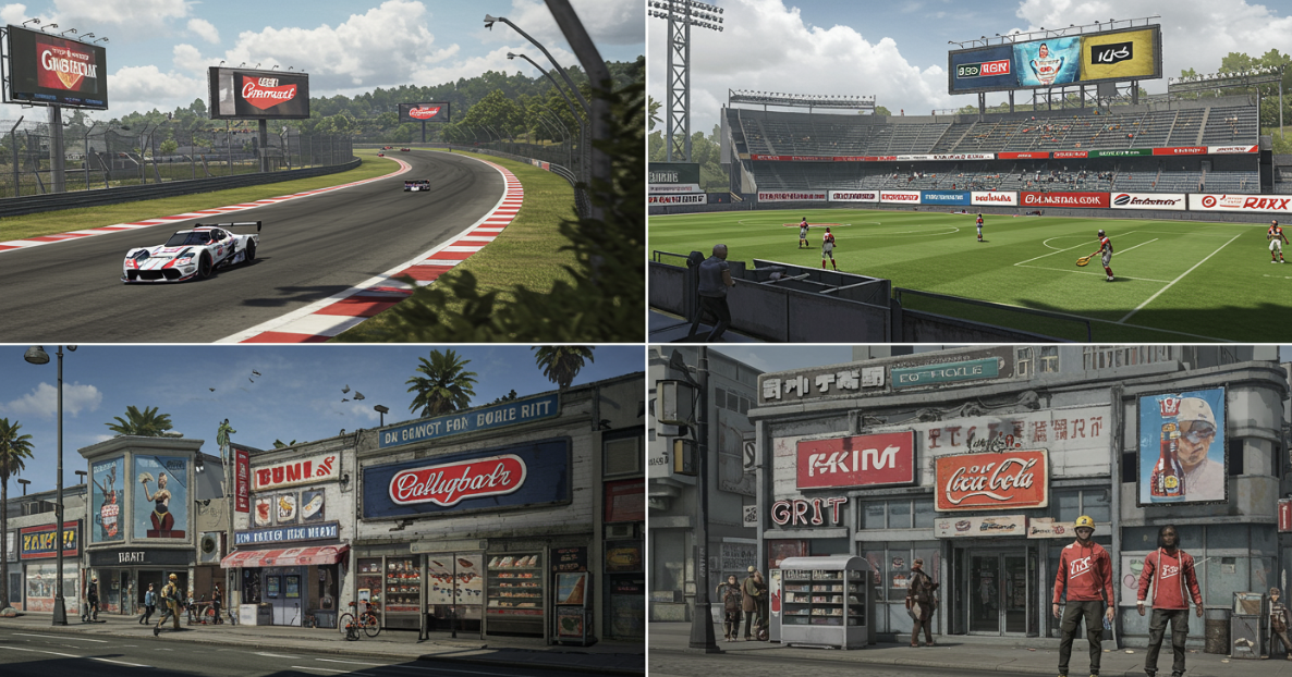 真の意味での「ゲーム内広告」とは、ゲームの世界観の中に自然に組み込まれた広告のことを指します。例えば、レースゲームのコース脇に設置された看板や、スポーツゲームのスタジアム内の広告ボードなどが該当します。