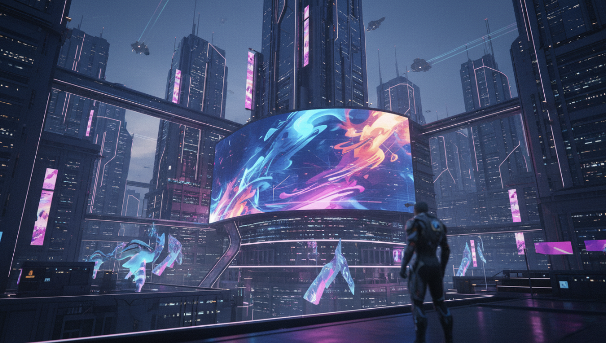 メタバース・ゲーム内広告のアドネットワークサービスでは、様々なゲーム・メタバースの中に配置されたテレビや看板に、テレビCMのような動画広告を配信できます。従来型Web広告よりも高い注目度と想起率の「嫌われない広告」として機能します。